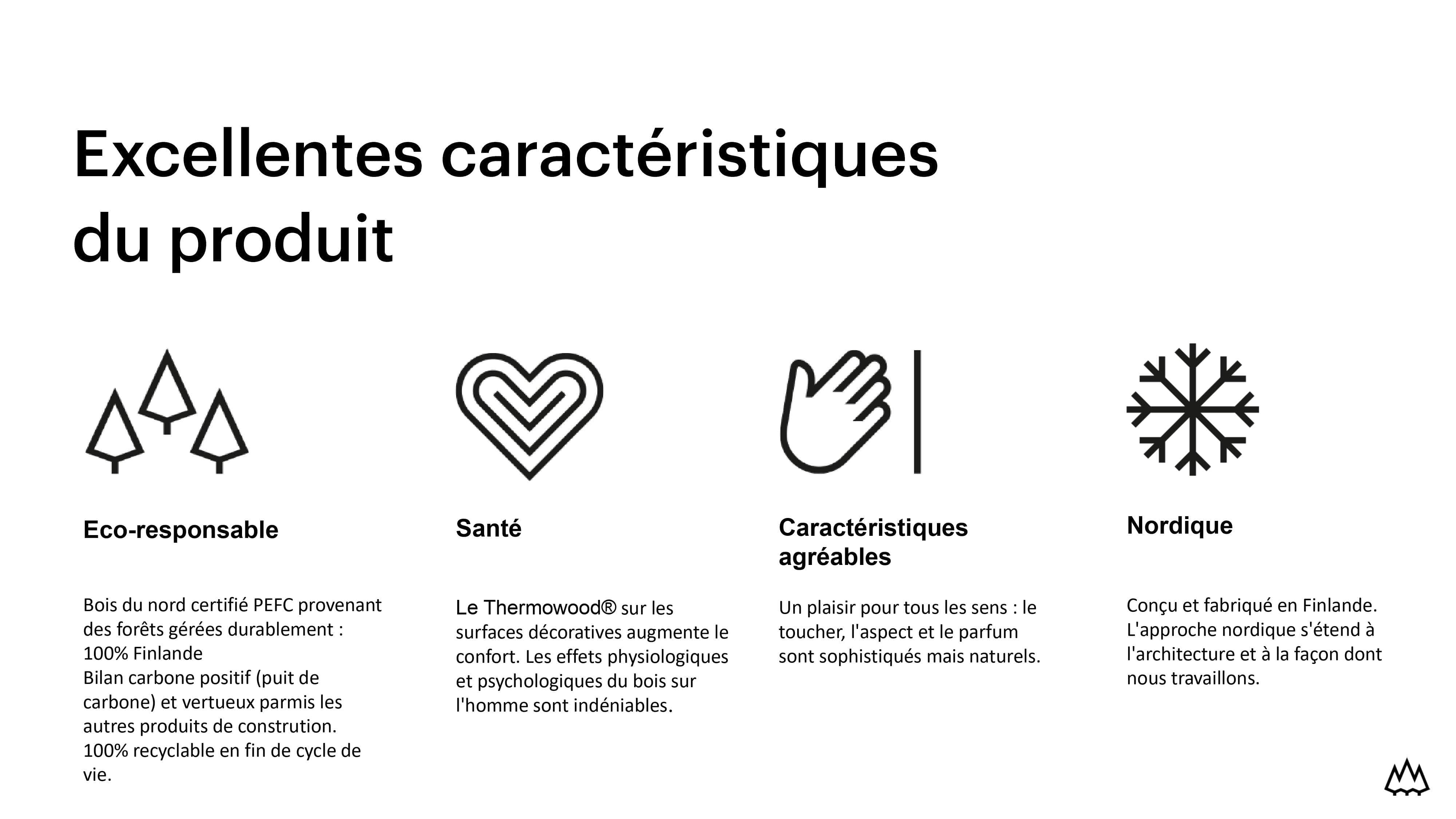 Caractéristiques des produits Thermowood :