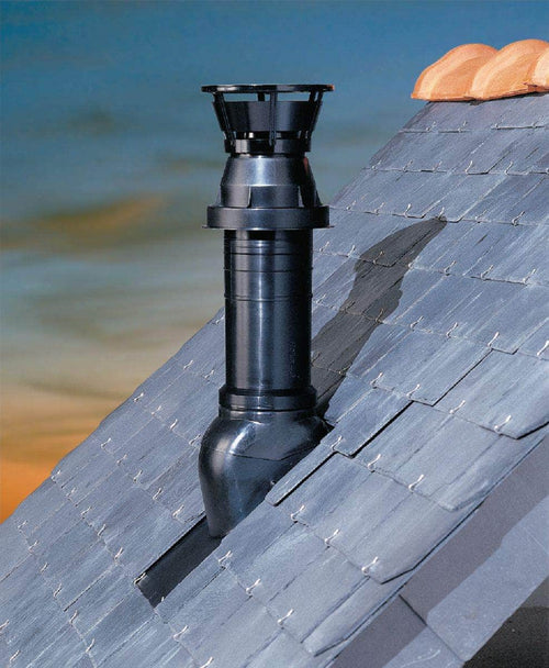 permet le rejet des gaz brûlés et la prise d'air. Il est discret et esthétique sur le toit. Discret et esthétique sur le toit.Pas d'obligation de dépasser du faîtage, s'installe n'importe où sur le toit.