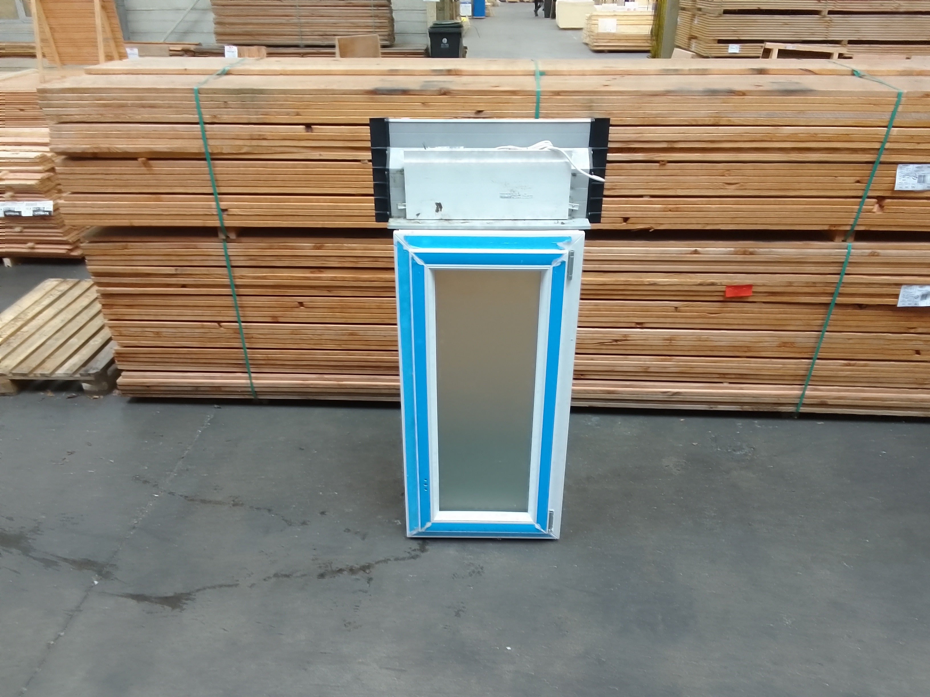 Défauts possibles : Quincaillerie manquante, "Surplus de chantier, stocké en extérieur pendant plusieurs mois", Palette support abîmée
