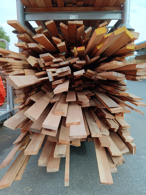 Défauts possibles : Variations de dimensions, Traces de sciage ou de découpe ancienne, Bois partiellement grisé ou décoloré par le soleil