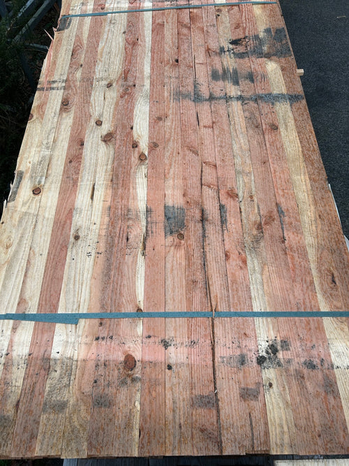 Défauts possibles : essences mélangés, douglas et epicéa, Bois partiellement grisé ou décoloré par le soleil, présence d'aubier