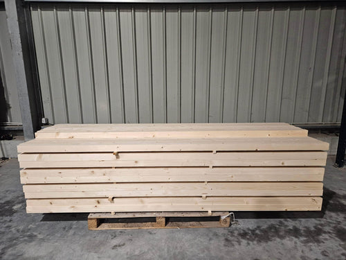 ♻️ Remise en état réalisée : sciage de poutre en lamellé collé à la scierie mobile, tronçonnage des morceaux en longueur m à la scie radiale, passage des morceaux à la 4 faces et pour finir colisage.