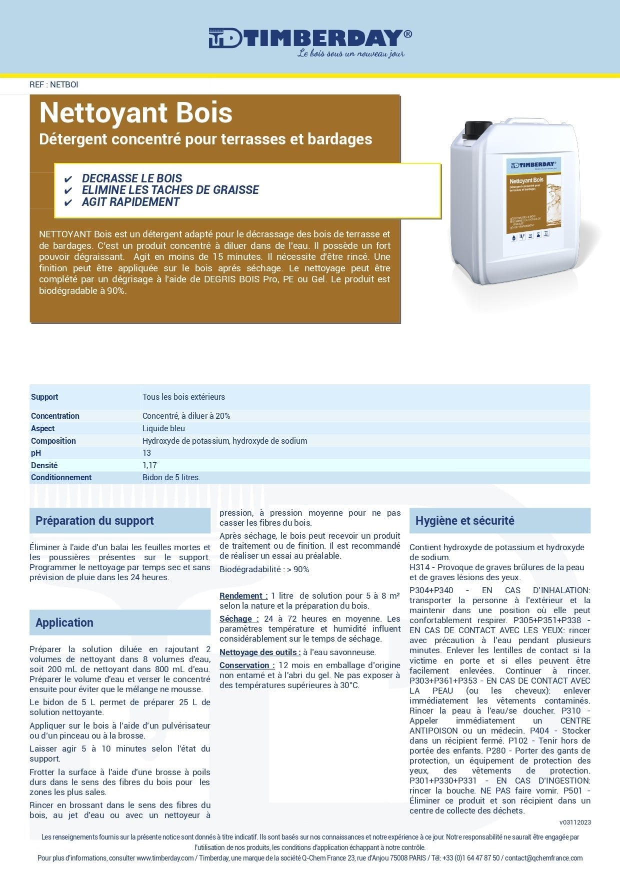 Nettoyant Bois 1 Litre Timberday